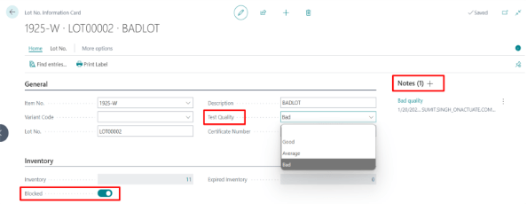 - The system automatically prevents users from posting sales order transactions involving the blocked lot.